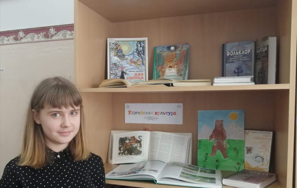 Мария Васько, обучающаяся 6 класса, подготовила выставку книг по удэгейской культуре. Удэгейцы — это коренной малочисленный народ Хабаровского края. «В прошлом были известны как кяла, орочи, орочоны. Этноним «удзи» в старом маньчжурском языке означал кустарник на рёбрах гор, лес, чаща, дремучие леса» (из книги «Этноатлас Хабаровского края»)