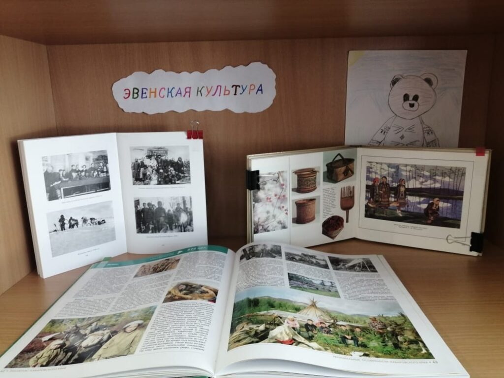 В школе продолжается работа в рамках краевого проекта «Диалог культур народов Амура». София Иващенко подготовила выставку книг по культуре эвенов. Эвены — это один из 8 малочисленных народов Хабаровского края. Эвенский язык относится к тунгусо-маньчжурской ветви алтайской языковой семьи. В нём насчитывается около 20 диалектов и говоров, объединяемых в 3 наречия: восточное, среднее и западное.
