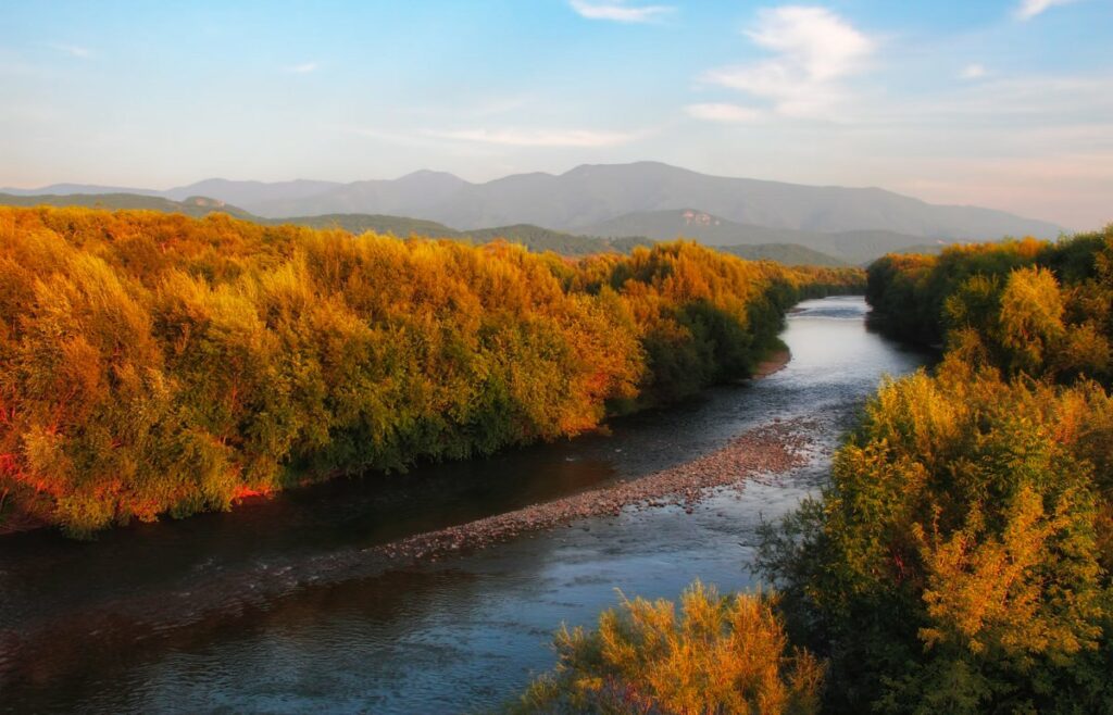 Постоянный водный поток значительных размеров с естественным течением поруслу от истока до устья.
