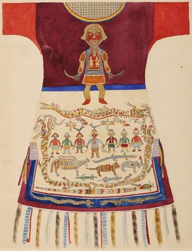 Как духи-помощники, тигры изображались как на одежде шаманов, так и виде сэвэнов. Пример изображения тигра на шаманском халате в виде духа-помощника можно увидеть на рисунке из коллекции Дальневосточного общества краеведения (ныне – в собрании ДВХМ), созданном Лесючевской Ольгой (Эльгой) Николаевной в 30-х годах XX века (рис.3). На шаманской одежде персонажи наносились контурной линией, при этом художник часто нарушал пропорциональную зависимость деталей туловища (…большая голова и малое тело), не соблюдалась перспектива, отсутствовала детальная прорисовка. Важной деталью являются поперечные полосы, изображающие шкуру зверя, по которым узнают тигра среди других животных из семейства кошачьих.